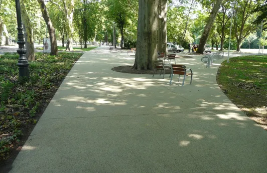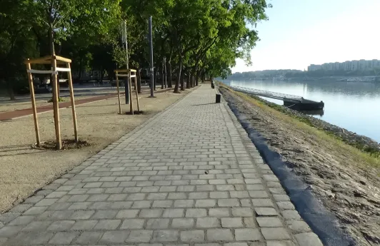 Meglévő utak burkolatának cseréje. A gerincutat követő pesti oldali sétány kavics+aszfalt burkolat átalakítása egységes Terraway burkolattá, lapkő burkolatok cseréje stabilizált burkolattá, néhány közlekedési felület, bővítése és felújítása.
